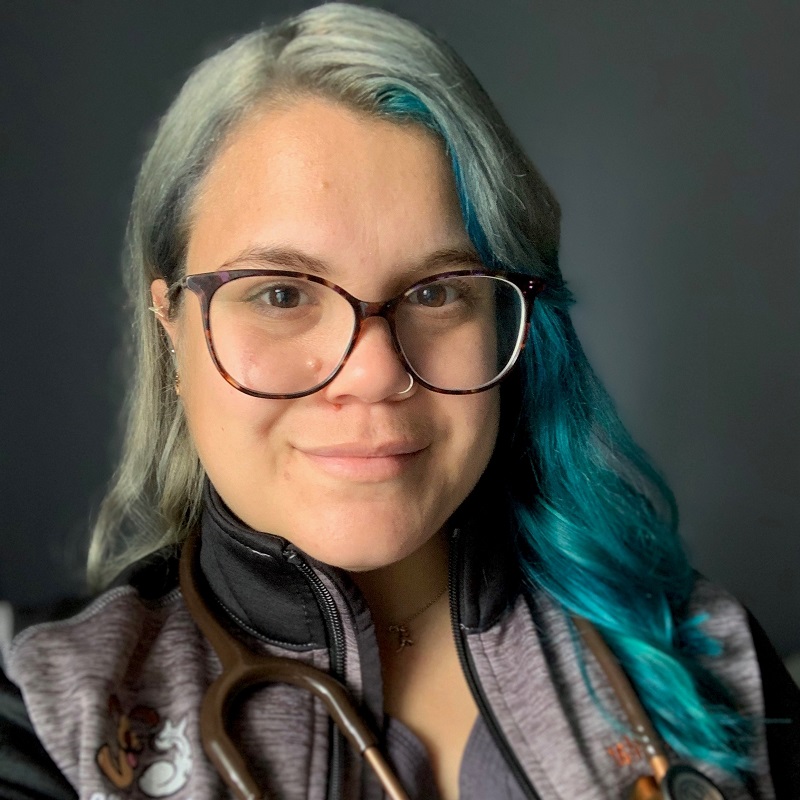 Some of her vet med favorites include surgery, preventative medicine, client education, and giving love and cuddles to her patients.